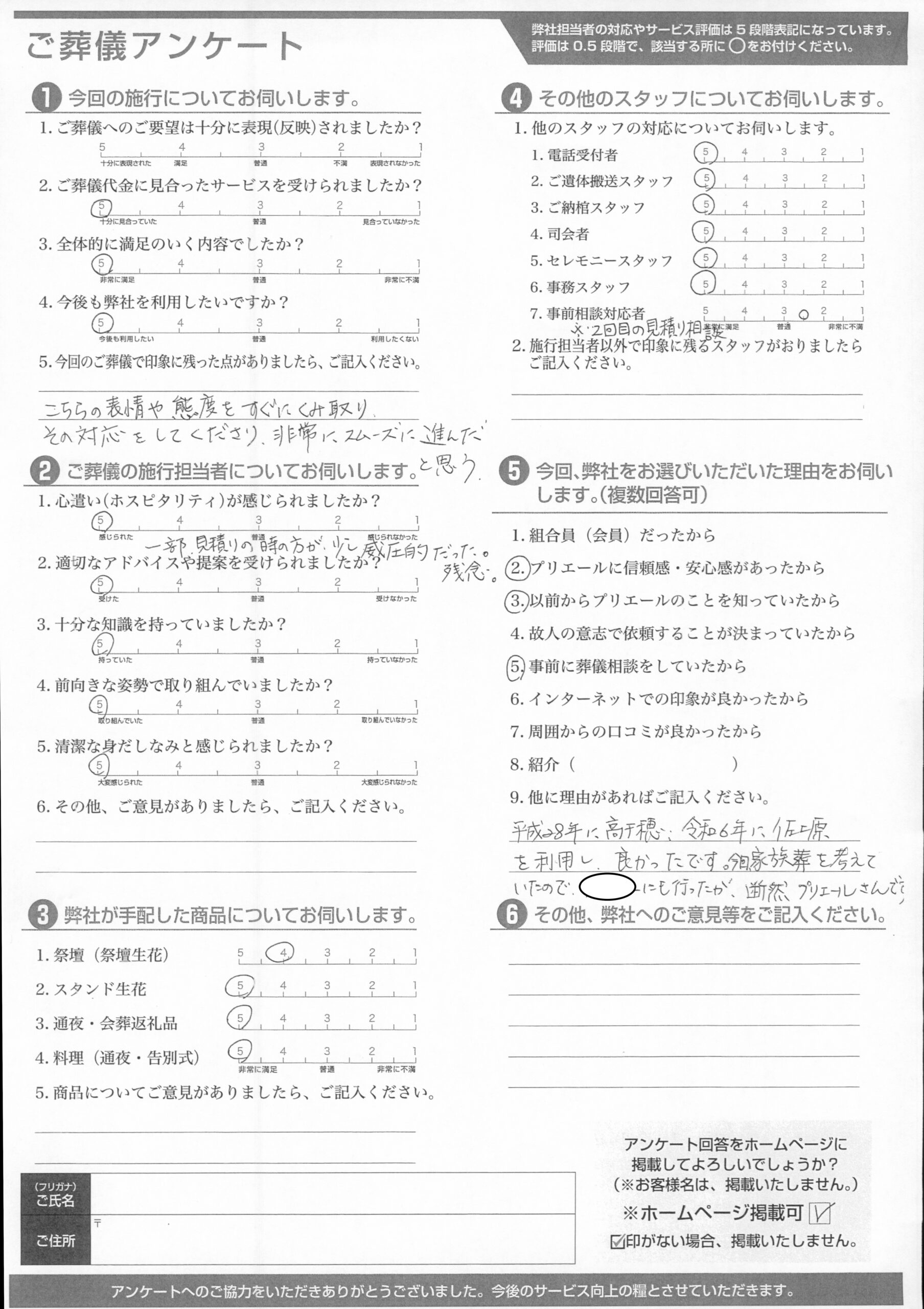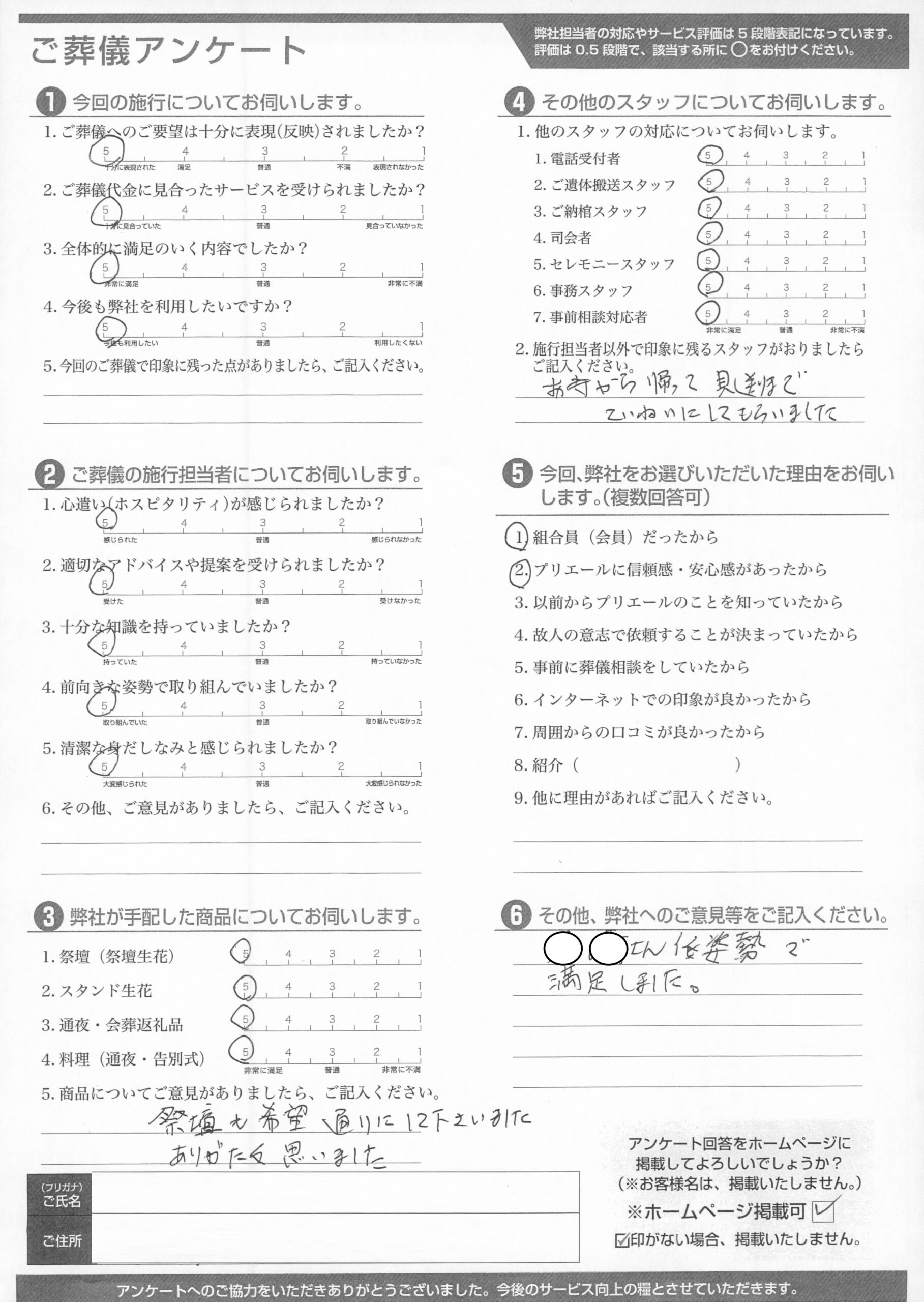 ・○○さんありがとうございました。 ・今回の担当の方の細やかな対応により非常に満足…