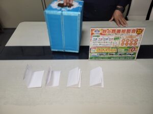 11月8日(土)~16日(日)までの9日間、「秋の葬儀相談会」を開催しました。今回も葬儀相談されたお客様の中から抽選で4組の方にバラエティギフトセットが当たるプレゼントキャンペーンをおこないました。すべての相談会が終了後、厳正な抽選をおこない、4組の当選者が決定し、それぞれギフトをお届けいたしました。【当選者:宮崎市清武町~S様、宮崎市佐土原町~Z様、宮崎市田野町~M様、宮崎市佐土原町~Y様】ご当選おめでとうございました。