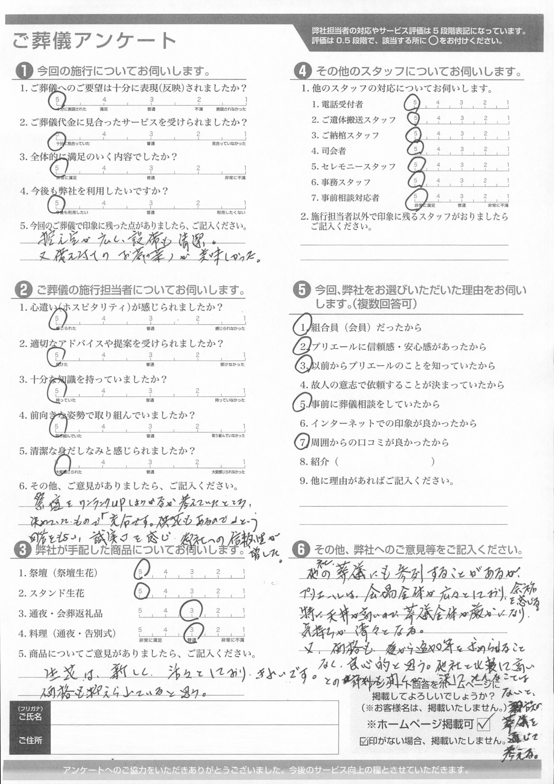 ・さすが、プリエールさん安心してお任せ出来ました。 ・担当〇〇さんには、父・主人・…