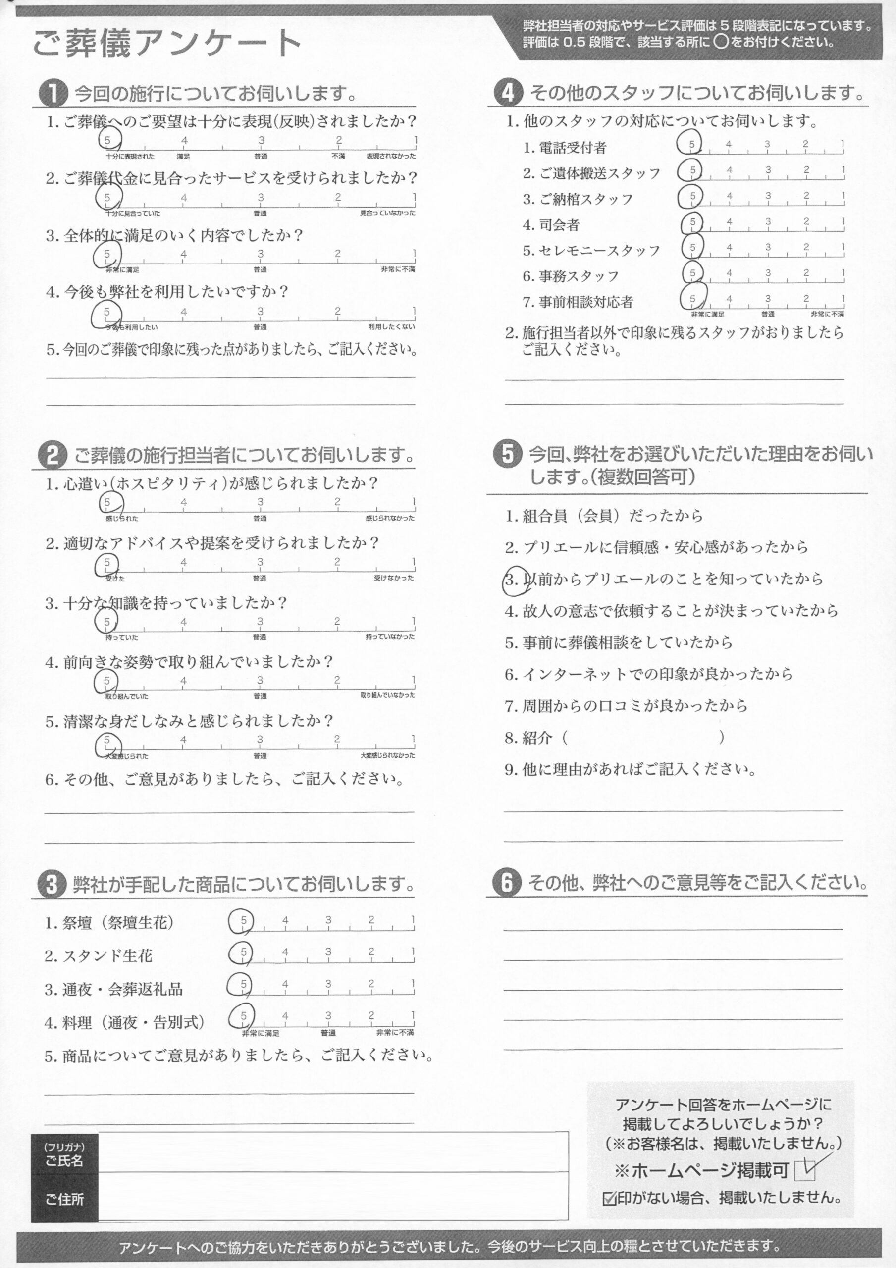 ・さすが、プリエールさん安心してお任せ出来ました。 ・担当〇〇さんには、父・主人・…